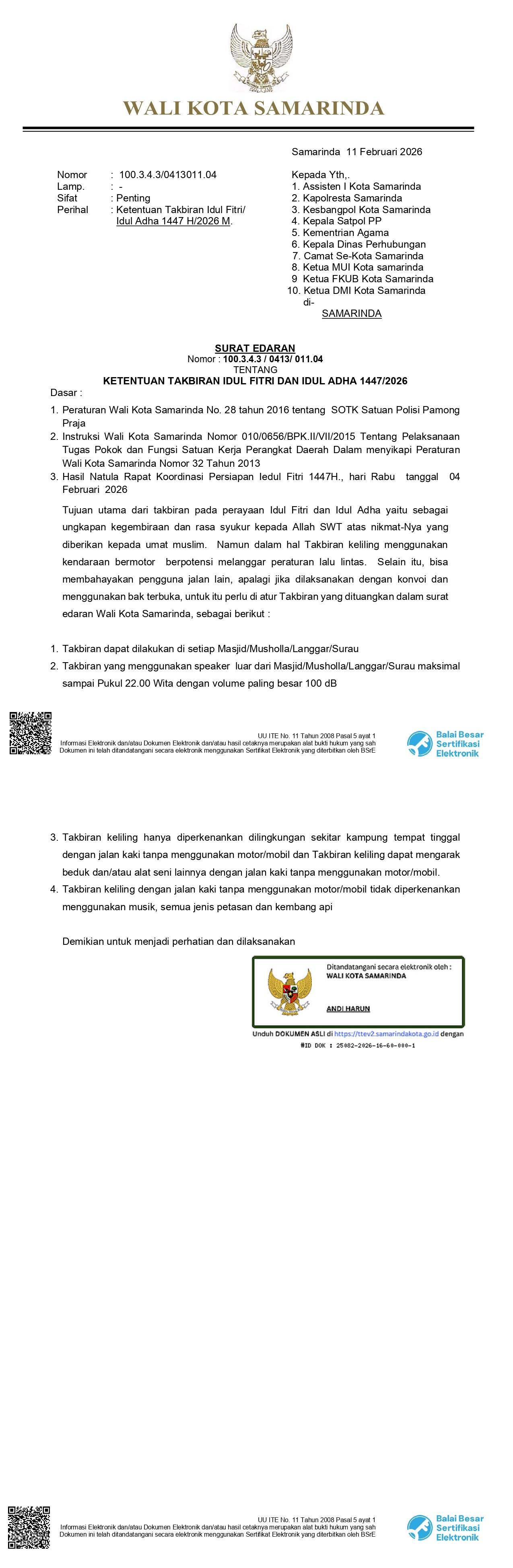 SE Ketentuan Takbiran Idul Fitri dan Idul Adha 1447/2026