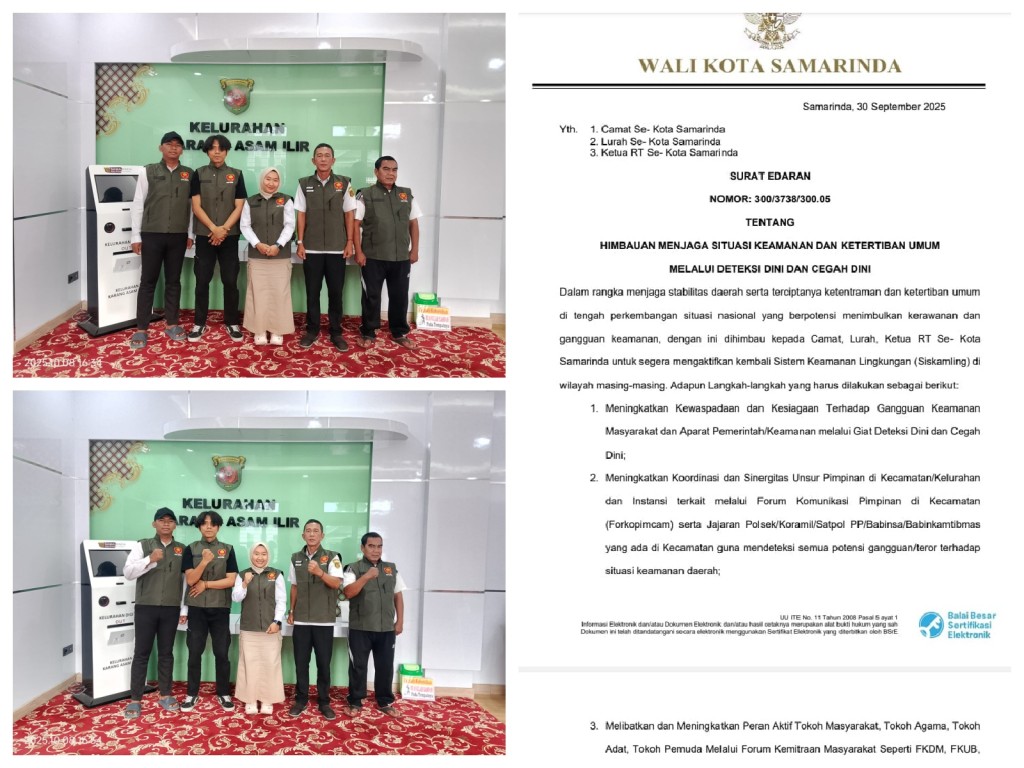 Lurah Karang Asam Ilir bersama Satlinmas Kelurahan Karang Asam Ilir..
