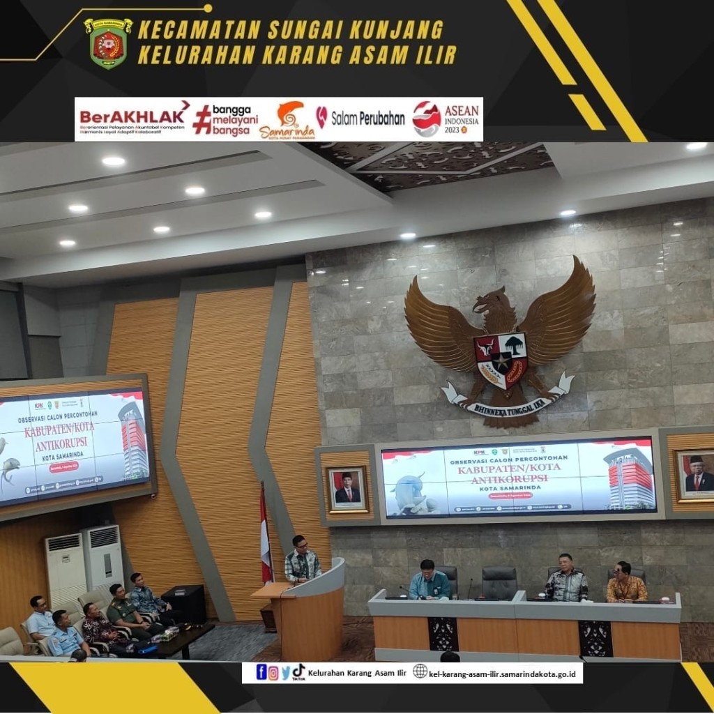 Obeservasi Program Percontohan Kabupaten dan Kota Antikorupsi oleh Direktorat Pembinaan Peran Serta Masyarakat (Ditipermas) KPK RI bertempat di Ruang Mangkupelas Balaikota Samarinda dihadiri oleh Plt. Lurah Karang Asam Ilir...