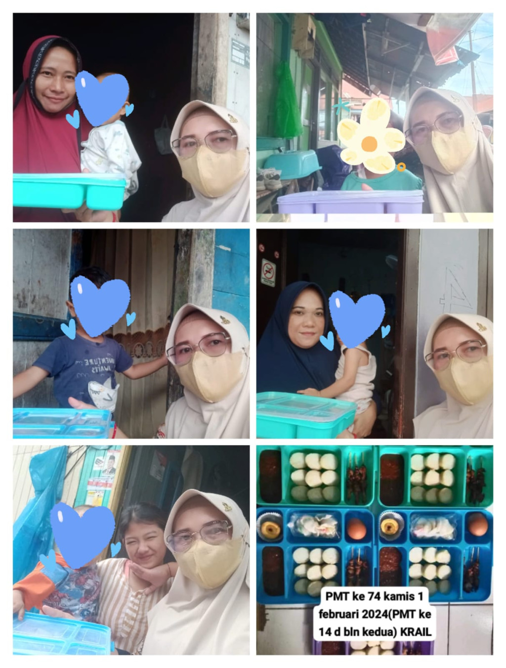 Pemberian PMT dari PT. Badak Hitam Perkasa oleh Ketua TP PKK Kelurahan Karang Asam Ilir kepada anak - anak penderita stunting di wilayah Kelurahan Karang Asam Ilir..